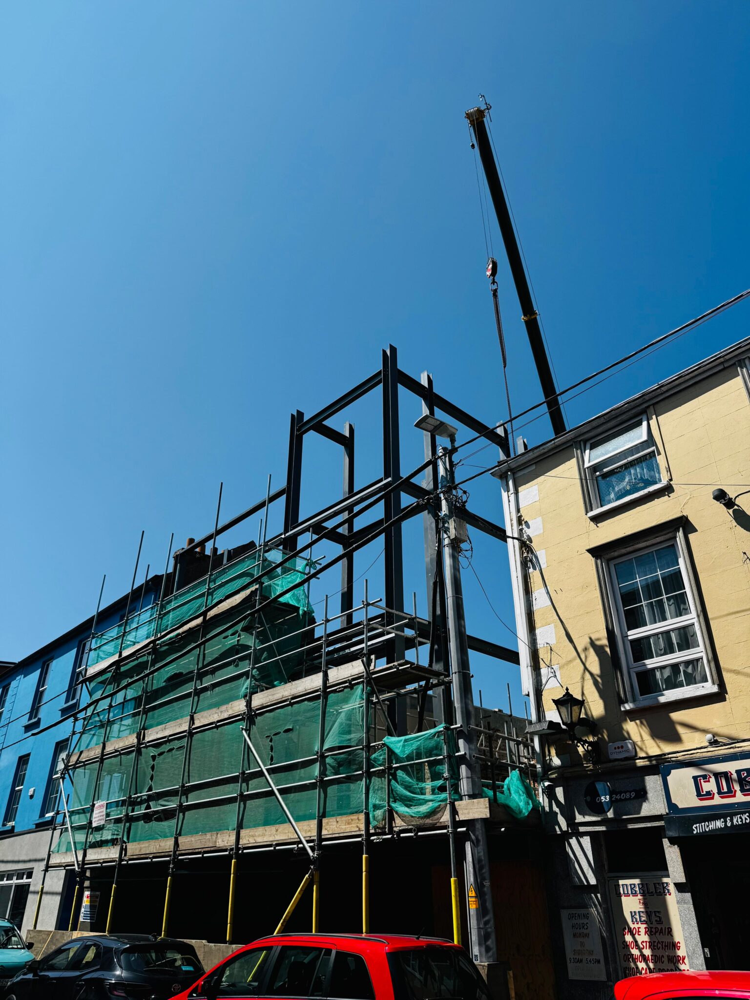 The Anne St Development in Wexford Town represents a successful fusion of original building preservation and modern structural innovation. This technically complex project involved the integration of a new 30-tonne steel structure into an original structure presenting both engineering and logistical challenges from the outset.