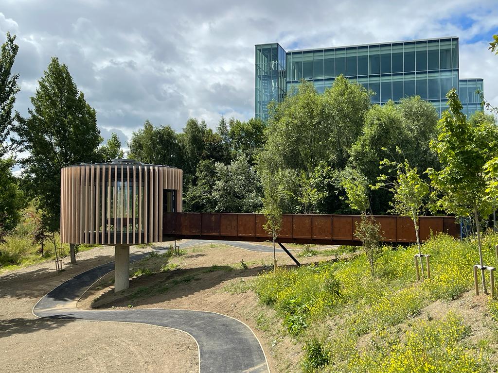 Graepels’ role extended beyond supply and manufacture—this was a creative partnership. Working with CME Industrial Specialists, MOLA Architects, and the broader Cherrywood team, we helped bring a biophilic design vision to life using precision-engineered Cor-Ten steel. Spanning between timber-clad pods set among woodland treetops, the bridges needed to meet strict safety and structural requirements while blending with their natural surroundings. Cor-Ten was selected for its ability to weather organically, forming a protective patina that reflects and complements the environment.