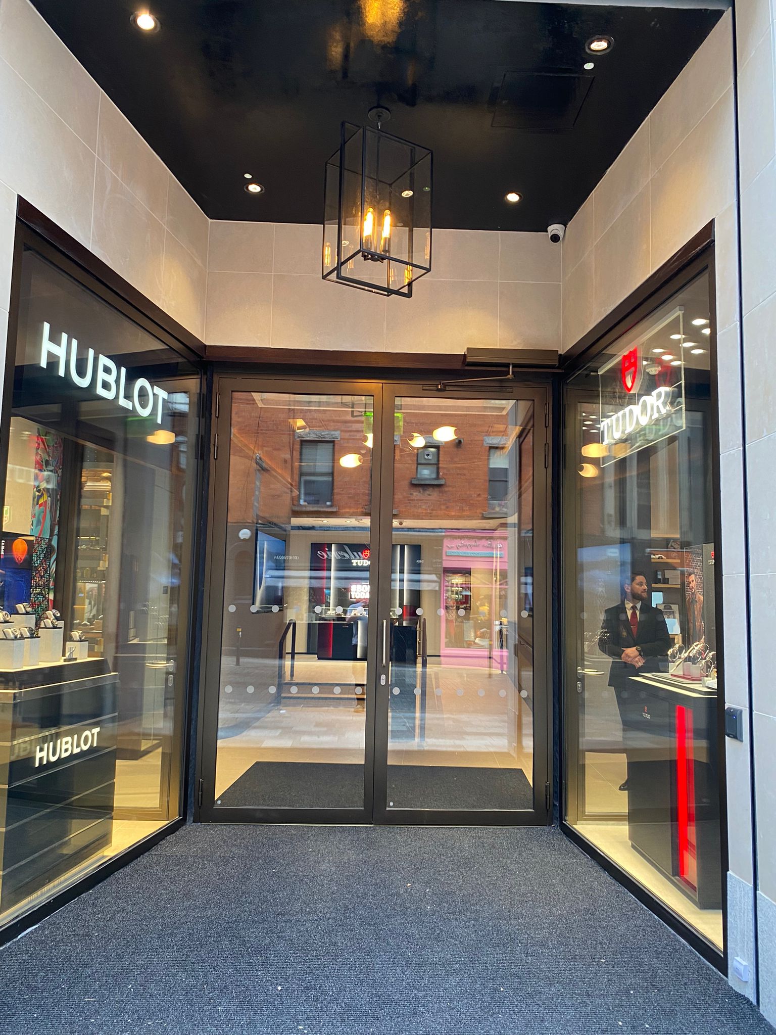 IDS was commissioned to design, manufacture, and install a bespoke Schüco Jansen Janisol insulated steel framed glazing system. Rated RC3 under ENV1627, the system features 33mm-thick P6B double-glazed security glass—offering high clarity and advanced protection, essential for a premium retailer handling high-value stock.