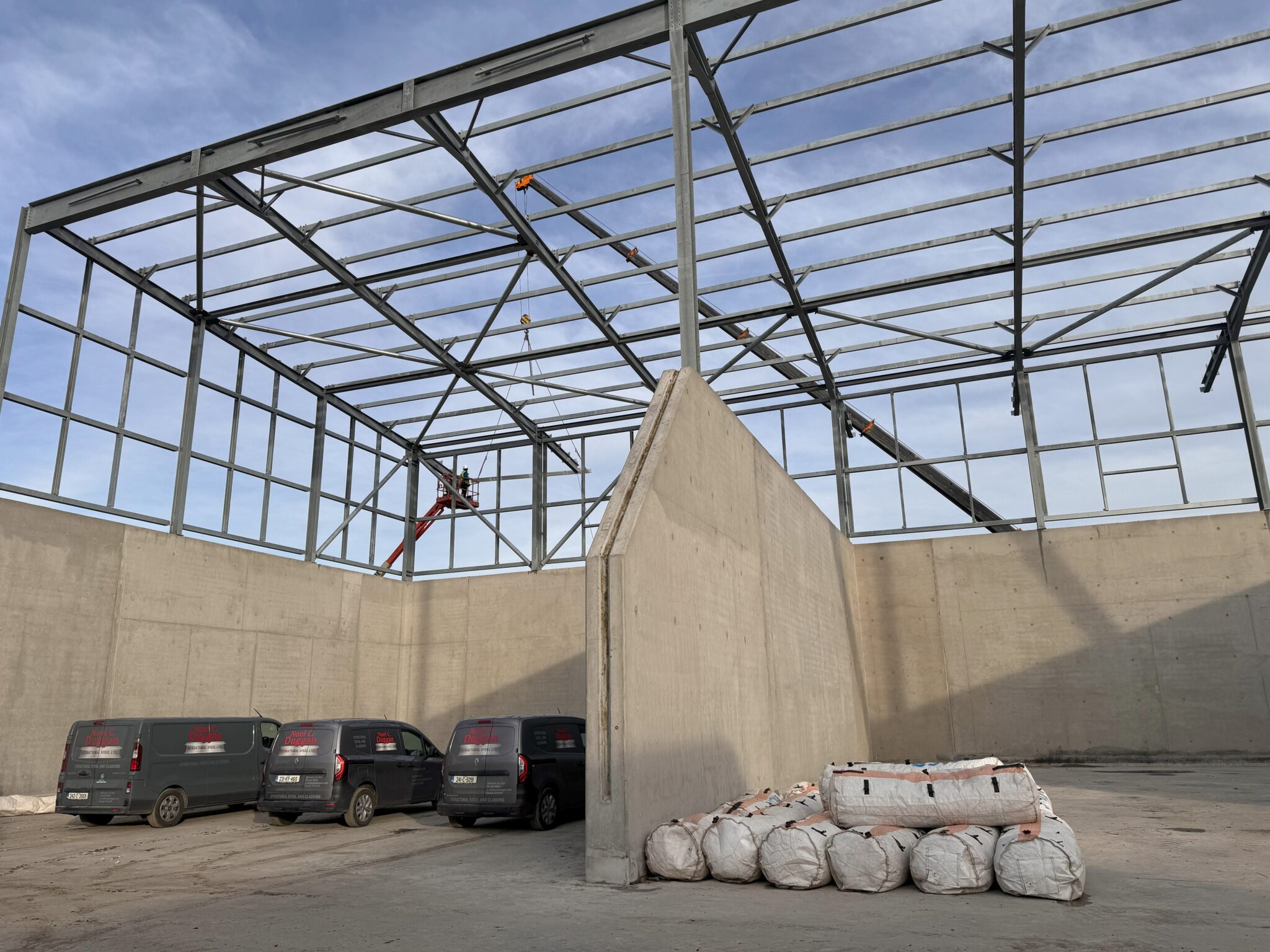Standing 850Tn on top of 8m high 600mm thick mass concrete walls has its own difficulties but pairing that with a C5 Corrosivity Environment added to the care our team takes when handling steelwork on site. When you take on a project with 9000No Members all with 140 microns of Galv on them, it is a challange but one we succeeded with.