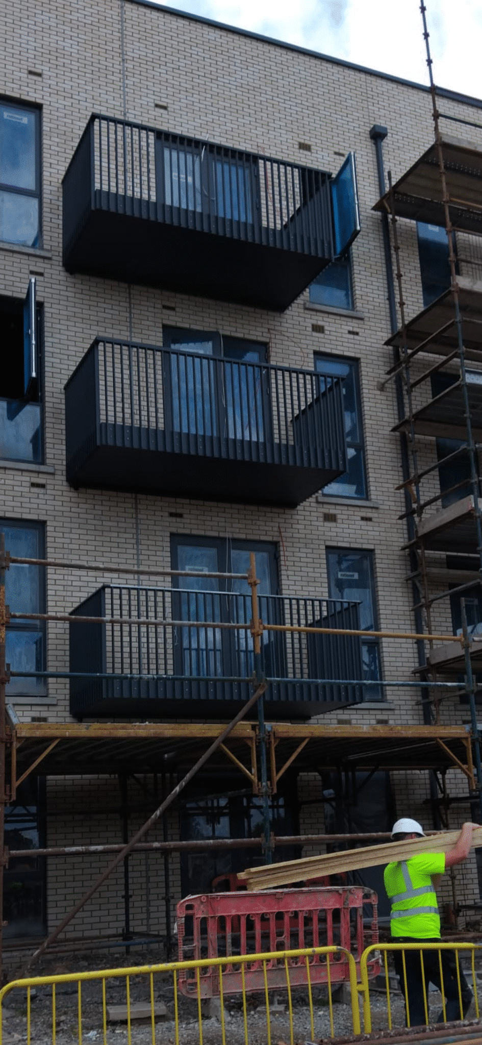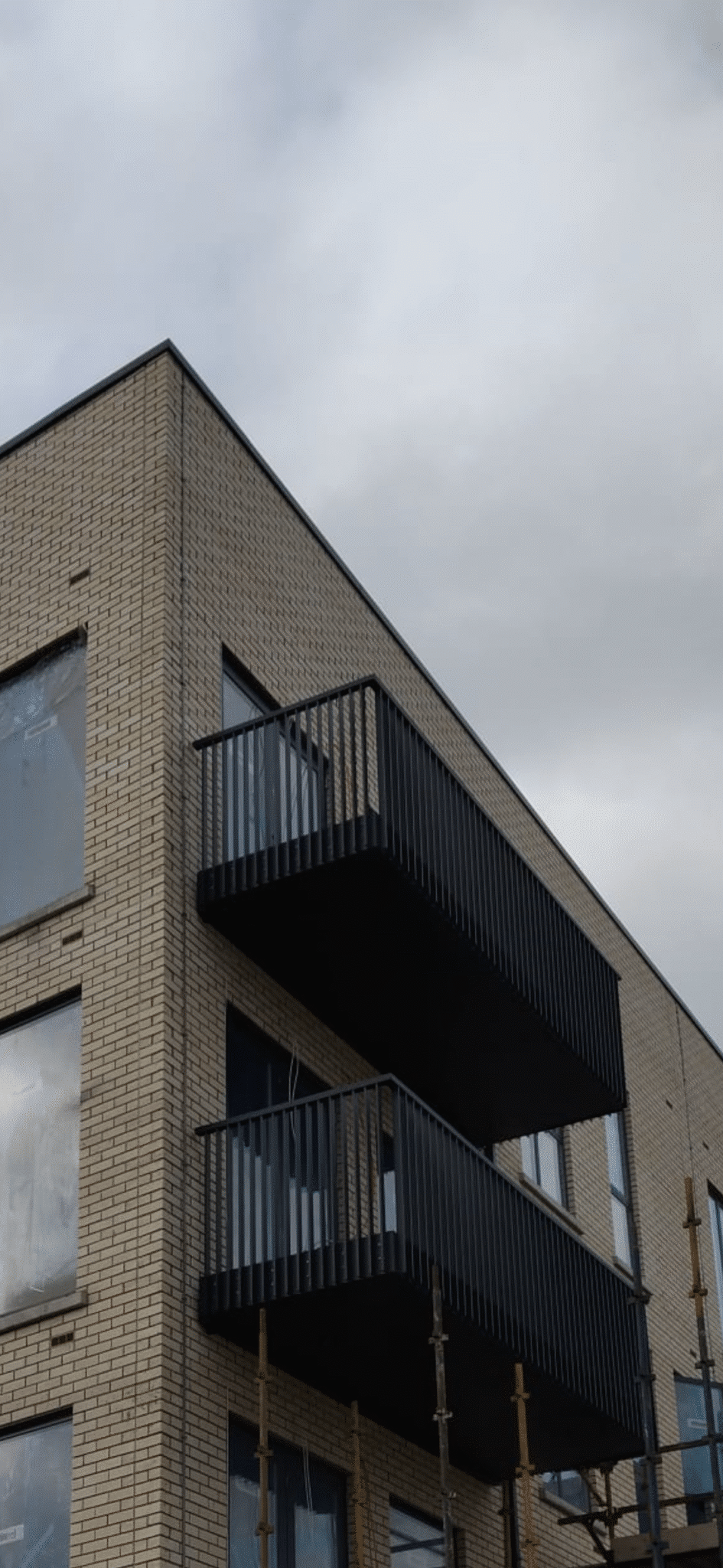 All balcony bases and cantilever stubs were fabricated and pre-assembled at our offsite manufacturing facility in Roscommon. This in-house approach enabled us to maintain full control over production, adhere to strict QA/QC protocols, and significantly accelerate delivery. It also minimized on site disruption, which was crucial given the urban location and tight site logistics.