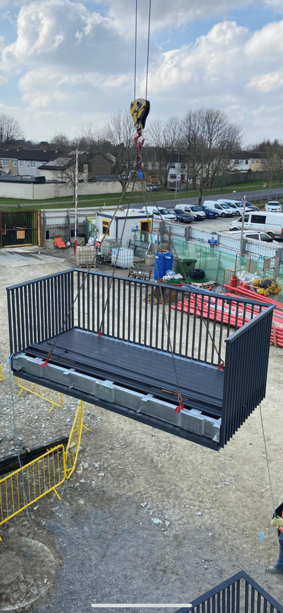All balcony bases and cantilever stubs were fabricated and pre-assembled at our offsite manufacturing facility in Roscommon. This in-house approach enabled us to maintain full control over production, adhere to strict QA/QC protocols, and significantly accelerate delivery. It also minimized on site disruption, which was crucial given the urban location and tight site logistics.