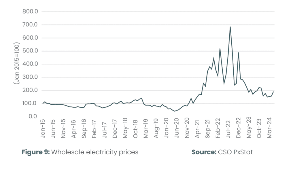 The increase in the cost of labour is coming on top of significantly elevated other costs of doing business, such as insurance costs and energy costs. Figure 8 shows the recent trend in wholesale electricity costs. Prices spiked dramatically in 2021 and 2022, and while prices have subsequently eased, the wholesale price of electricity in May 2024 was still 358 per cent higher than in May 2020.